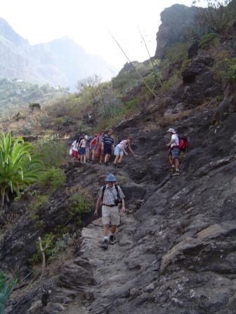 Die Mascaschlucht befindet sich unterhalb des Dorfes Masca. Masca selbst liegt etwa bei 600m über dem Meer und man läuft durch eine wildromatische Schlucht bis an Meer heran. Man sollte einigermaßen sicher laufen können und festes Schuhwerk, am besten Bergschuh tragen. Ich hatte meine Tour bei Diga-Sports in Playa las Americas gebucht und war wirklich hochzufrieden. *gell Bruno und Isabell. http://www.diga-sports.de/html/index.htm Es ist einfach wunderschön sich immer wieder umzuschauen, aber nicht den Blick auf dem Weg verlieren. Es macht einfach unheimlich Spaß...etwas Trittsicherheit ist schon zu empfehlen. Man kann den Blick nicht abwenden. Immer wieder neue schöne Augenblicke. Lang ist der Weg und doch immer wieder überraschend. Immer weiter geht es abwärts und die Felsen türmen sich immer weiter hoch. Wunderschön :-) Und schon haben wir fast das Ende erreicht. Noch einige schöne Impressionen. Nach knapp 3 Stunden haben wir es geschafft. Ein schöner Strand erwartet uns, wo wir dann von einem Boot abgeholt werden. | ![]() | |||||||||||